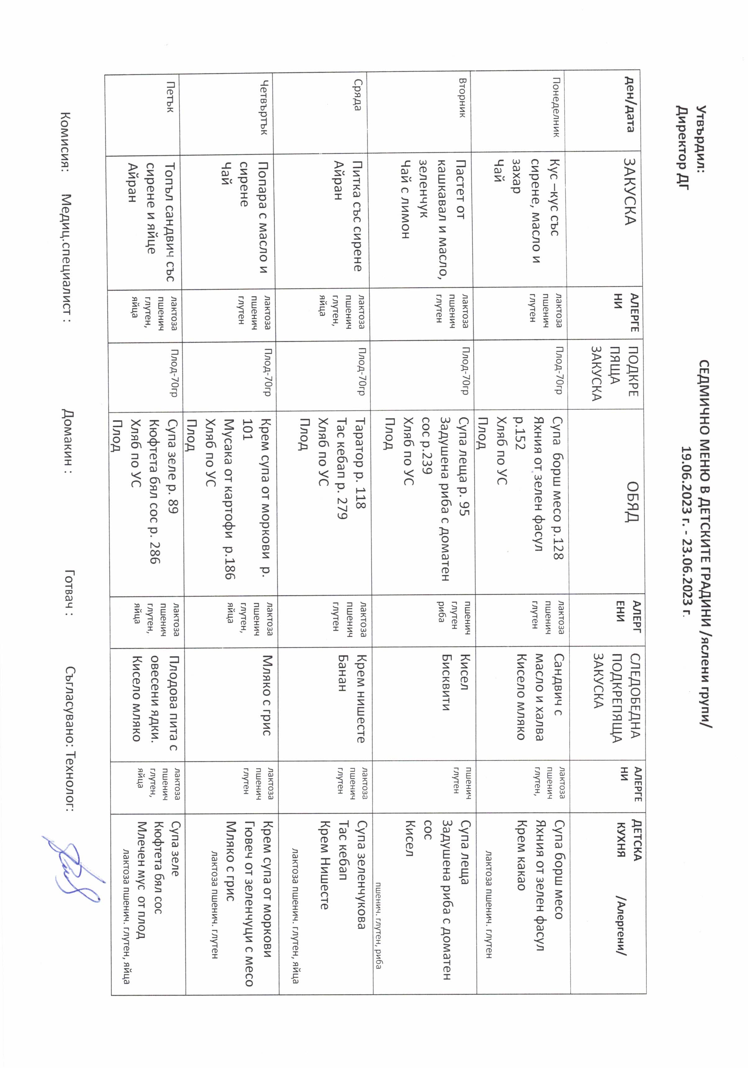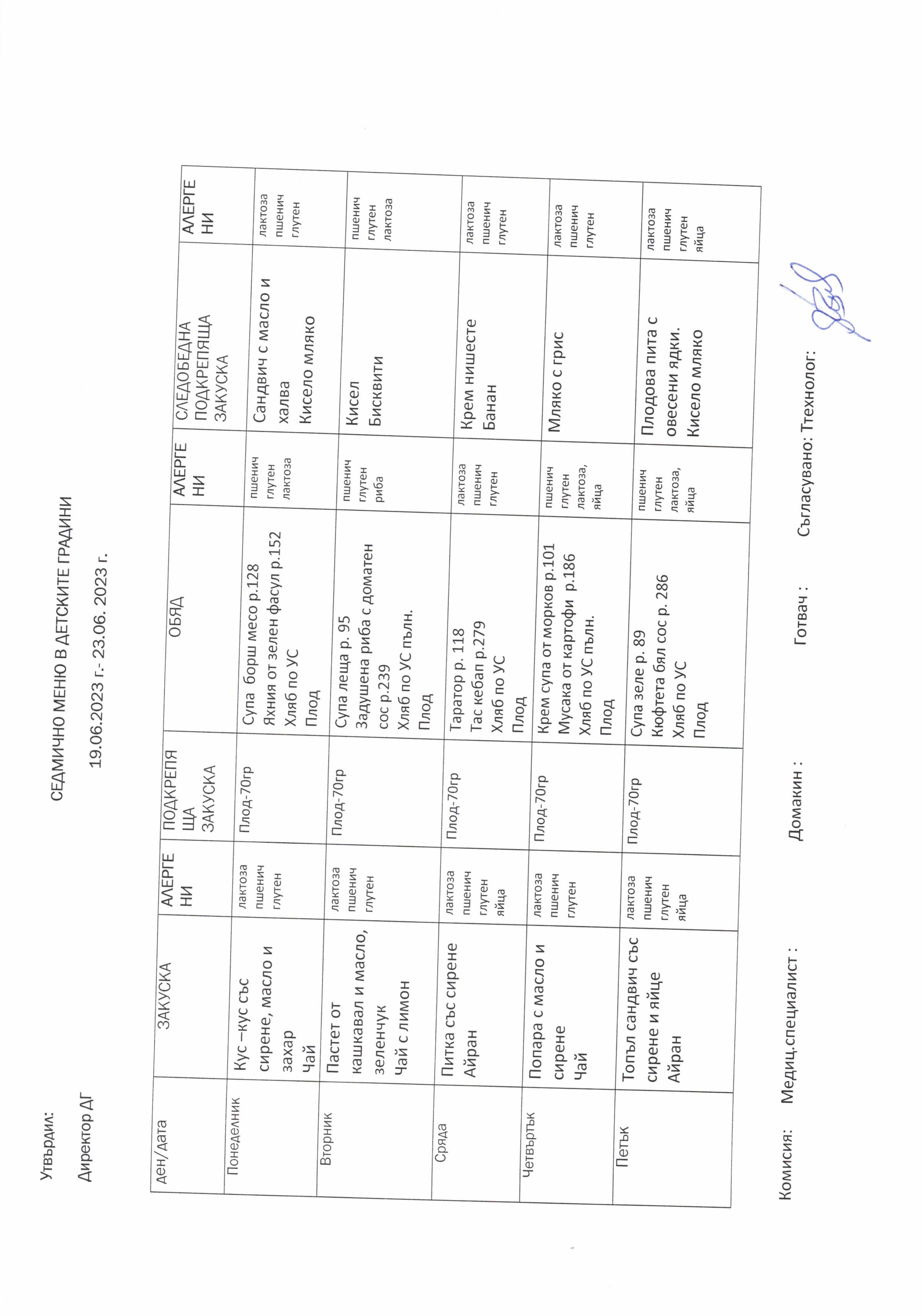 Седмично меню детска градина 19-06-23-06-2023 г.