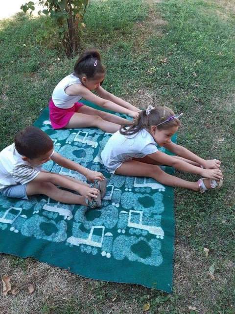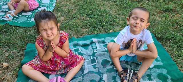 Детската йога е въздействаща върху развитието на тялото и емоциите на децата. Топлото време и пространството в двора на детската градина създават предпоставки за практикуване на йога.