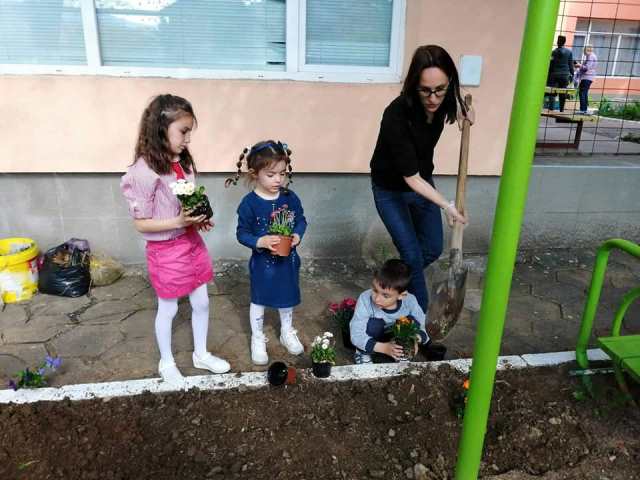 • Почистване на дворното пространство и залесяване с пряко участие на персонал, родители, род. Настоятелство и жители от квартала