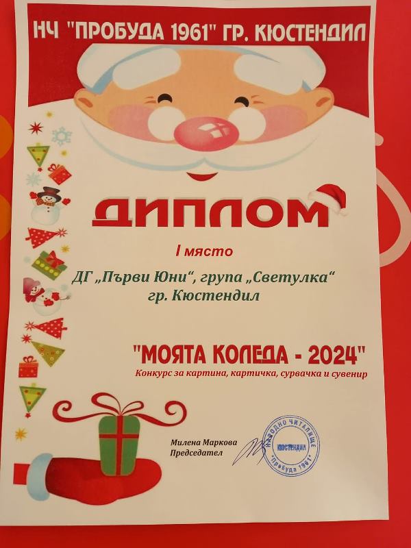 - "Моята Коледа" - конкурса на читалището :Пробуда"