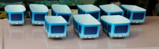 с блестящ, син автобус!