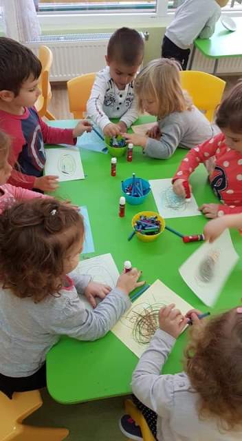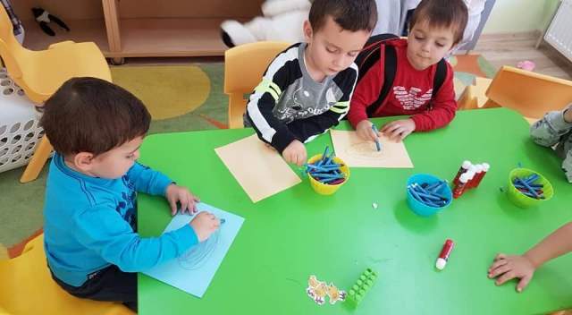 "Къщичка за птици" - това бе тамата на заниманието на децата от групата, преди да започне зимата. В началото всяко дете нарисува своето пиле, а след това заедно всички научиха как да се грижат за малките врабчета през студената зима.