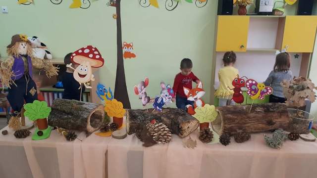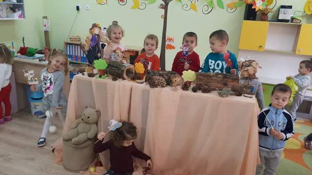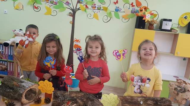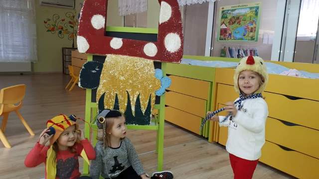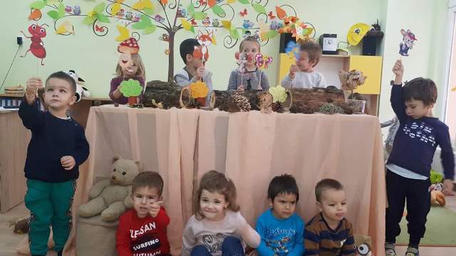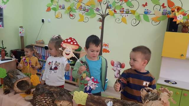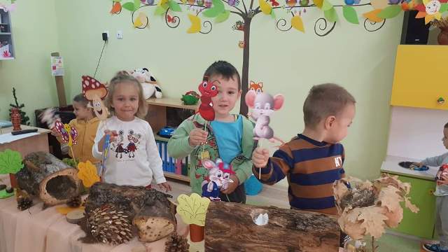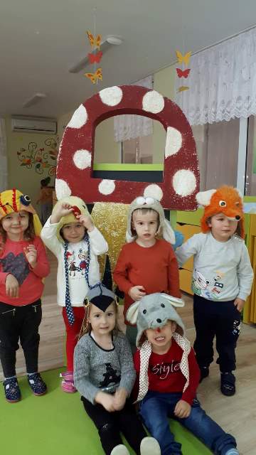 Mногообразно е ежедневието на децата от група " Зайче". От драматизация на приказката " Под гъбката" и представяне на куклен етюд - до художници и творци на "Листопад"