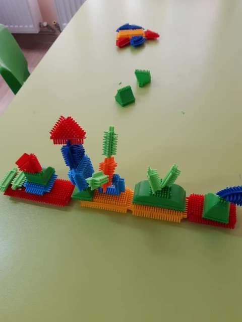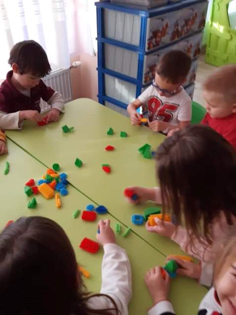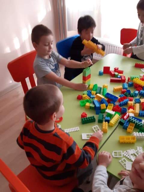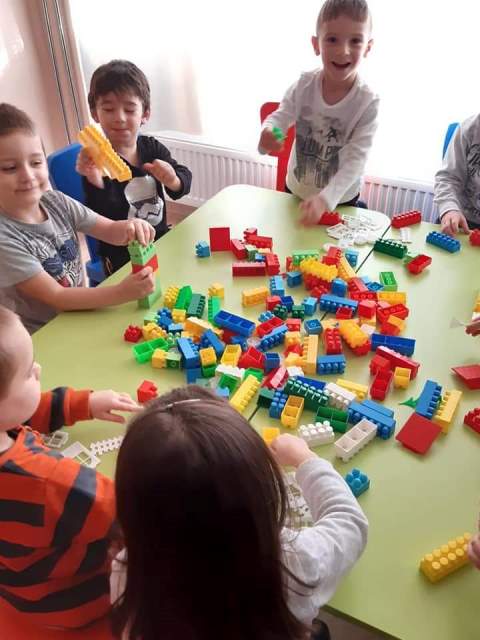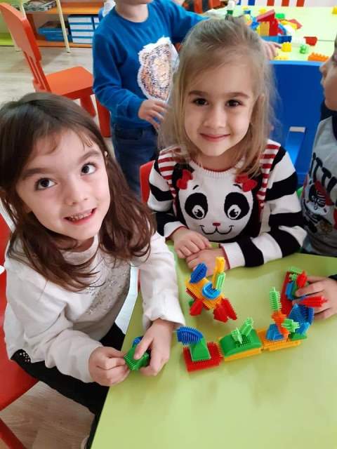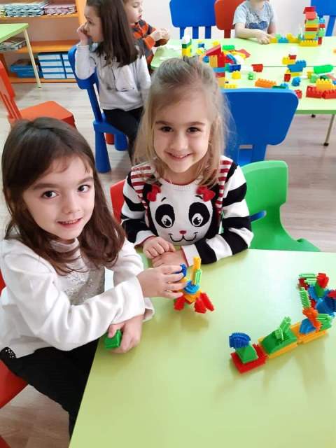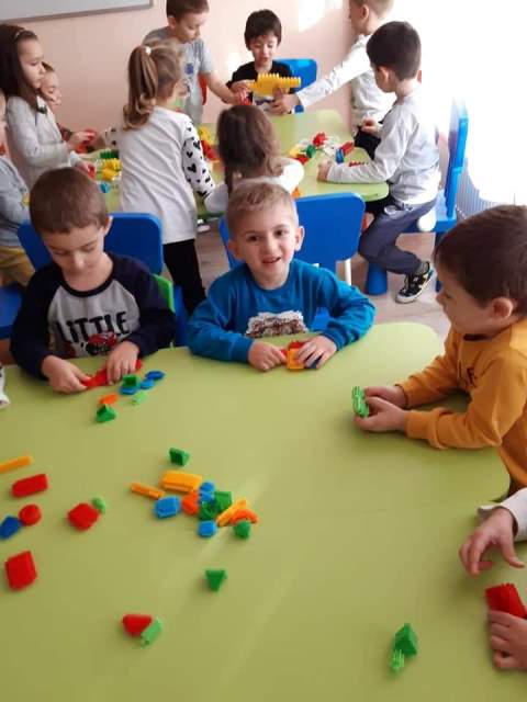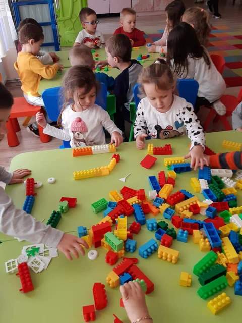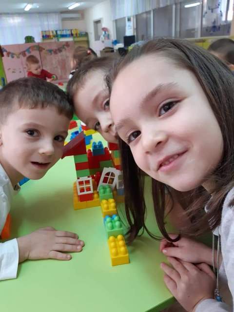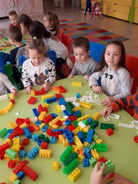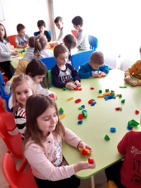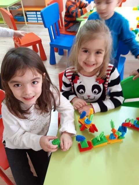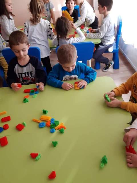 През мразовитите зимни дни децата от група "Зайче" се учат на математика и конструират сгради, коли и пътища.