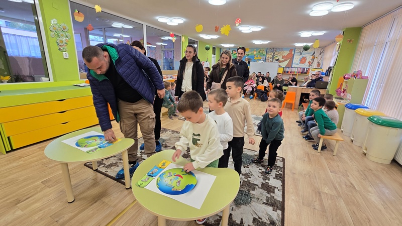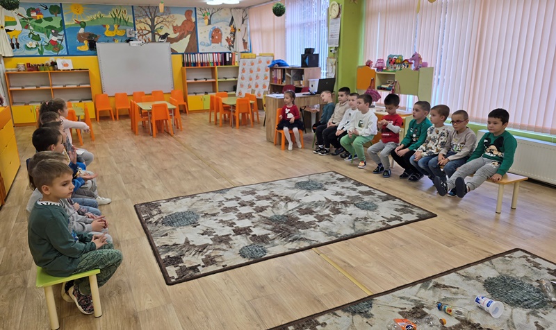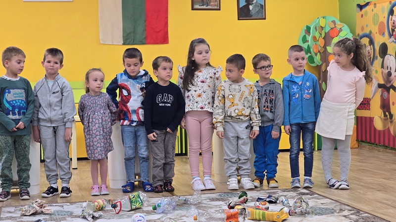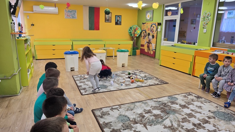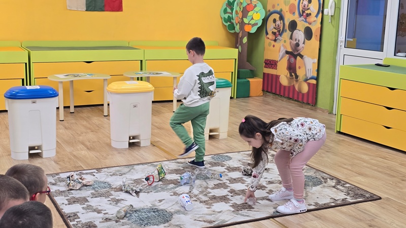 Чрез игри и демонстрации децата сортираха отпадъци в цветни контейнери и разбраха защо е важно всеки отпадък да отива на своето място.