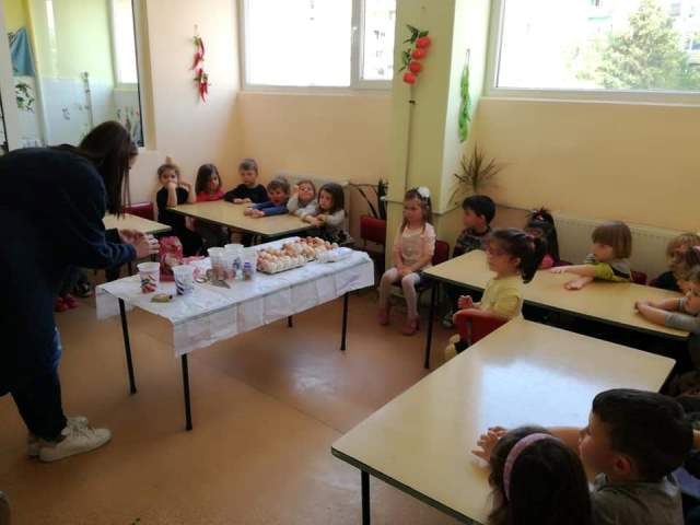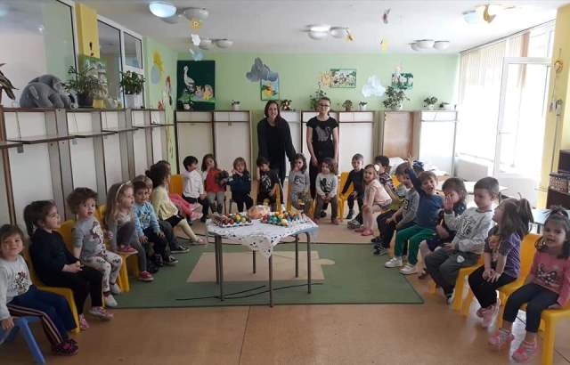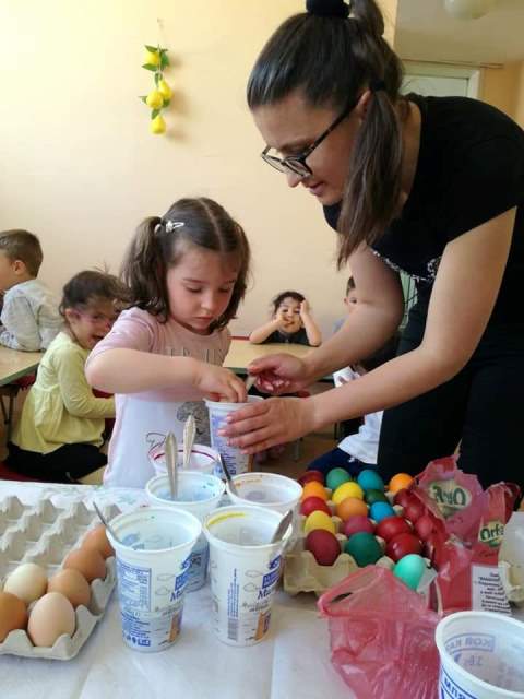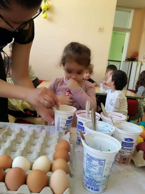 Благодарим за помощта на майката на Митко ,която ни показа интересни начини за боядисване на яйца и едновременно с това успя много непринудено и запомнящо се да предаде народната традицията на децата.