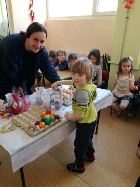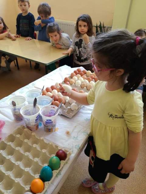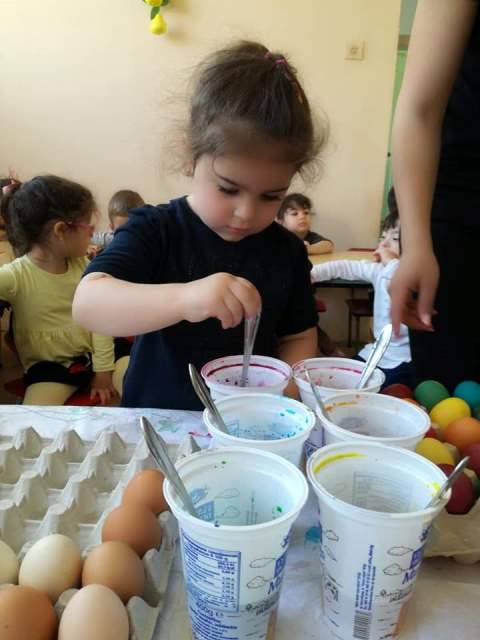 На велики четвъртък в групата се проведе необходима за всеки дом дейност, а именно -боядисахме яйцата .