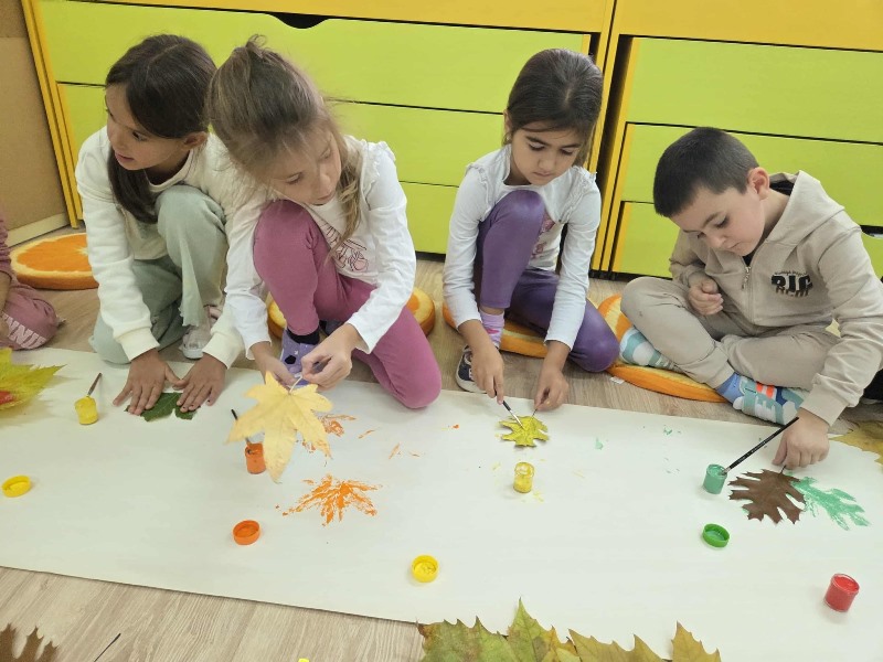 Вдъхновени от красивите есенни листа те сътвориха пано.